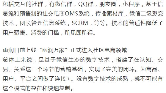但从另外一个角度来说,正是因为这一模式是基于微信生态,微信生态流量一旦疲软或者出问题,缺点也随之而来,这是行业从业者要考虑的。大量的认知,交易的交互,都在微信群或者QQ群发生,用户有着被打扰到的烦恼。