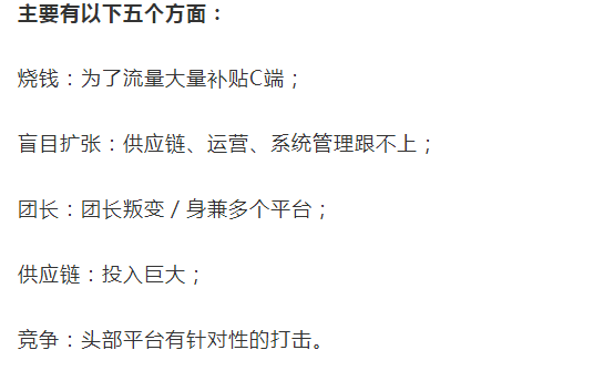目前的社区团购电商,基本都是从生鲜品类切入。这是因为,基于微信生态流量+社区LBS这样一个场景下,具备了垂直型生鲜电商的基础条件。之前烧钱的到家O2O模式的BUG,用到店这个模式解决了;产品库存和动销的问题,用预售拼团模式解决了;社交电商的弱关系问题,用团长的半熟关系解决了。从品牌商的角度来说,这是短链的产销一体,或者叫做产销一体的模式,是M2C。