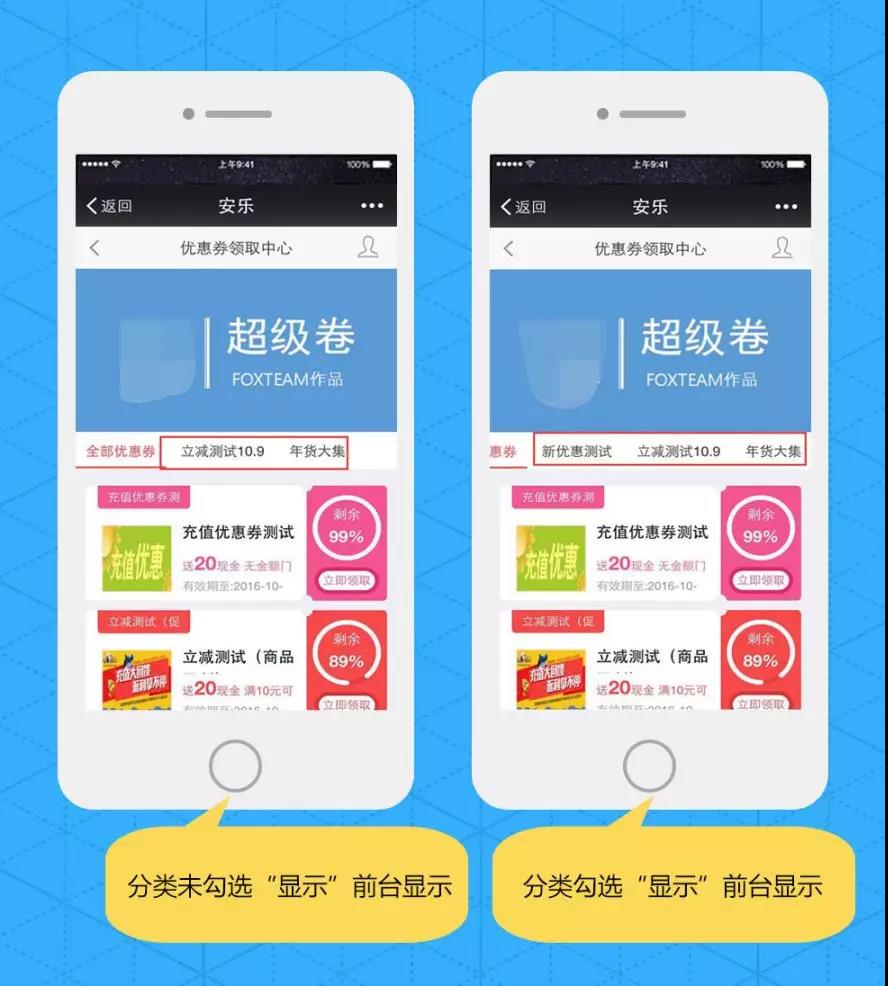 标签文字:可自定义优惠券的标签文字,在前台领取时可查看,参见下图: