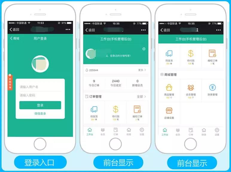 手机端商家管理中心是一个应用插件功能,用户可在手机端随时随地轻松的编辑店铺设置、会员管理、订单管理、商品管理、财务管理。