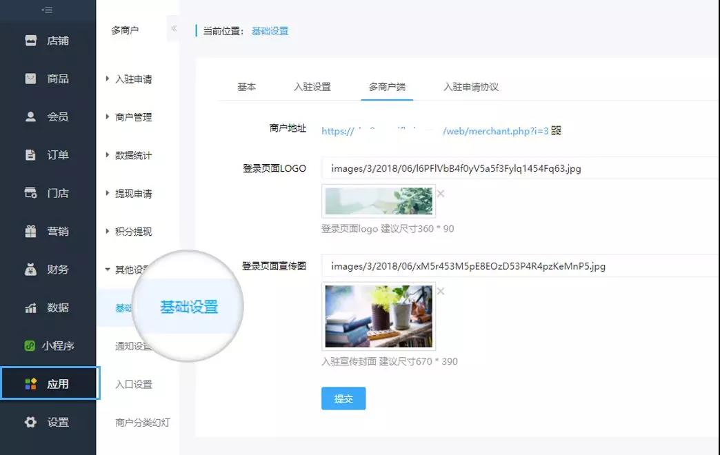 商城在管理多商户的时候还需要进行基础的设置,具体如下: